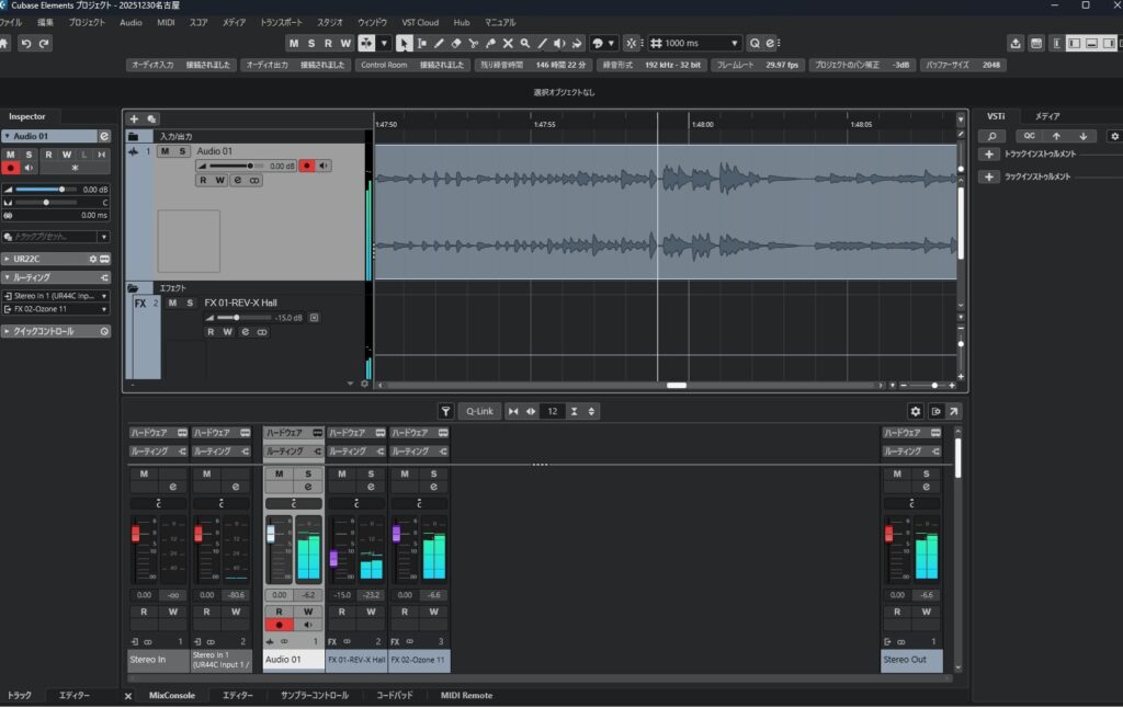 録音機材はマイクをオーディオテクニカのAT4040を2本、オーディオインターフェースはsteinbergのUR44C、記録はノートパソコンでCubaseで行い、マスタリングはOzone使いますが、マスタリングで、どう変えるのか変えないのかは、聞いて頂いて御相談です。音量のバランス、低音・高音の出し方も演奏家の方が表現されたものを正と考えますが、そこからどうするかは、御相談です。